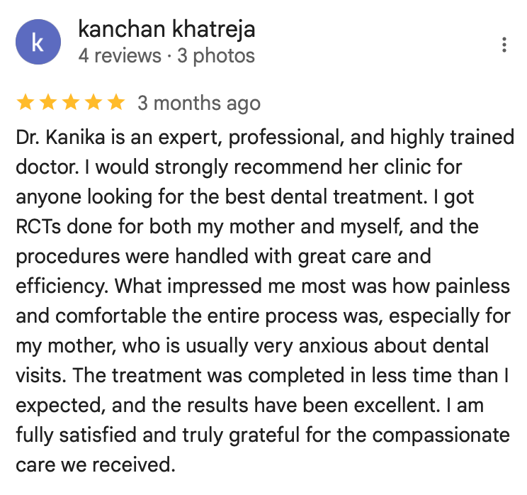 Dr. Kanika Kalra, a trusted Cosmetic Dental Surgeon with 18+ years of experience, is known for her expertise and gentle approach. A graduate of SDM College of Dental Sciences, Dharwad, she has advanced training in Endodontics, Prosthodontics, Pediatric Dentistry, and Digital Smile Designing.
